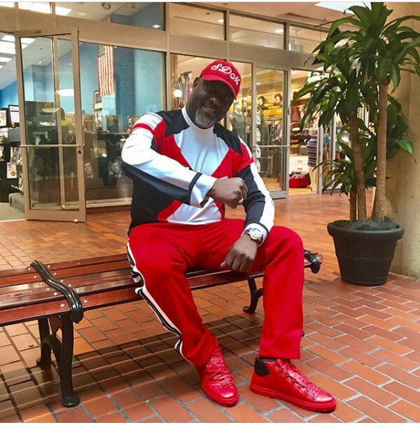 Kogi Senator Dino Melaye, who is currently in Washington D. C. for the World Bank/IMF Annual meeting, stepped out in a red with touch of black and white casual outfits and red high top Balenciaga sneakers.