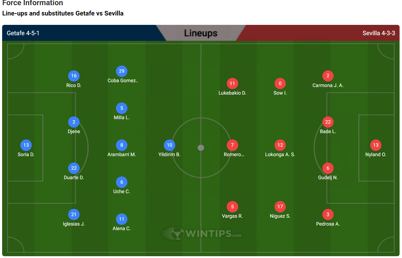 Predicted Lineups for Getafe vs Sevilla