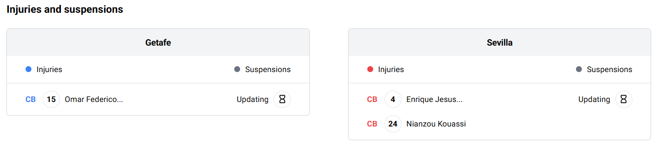Getafe vs Sevilla Team News
