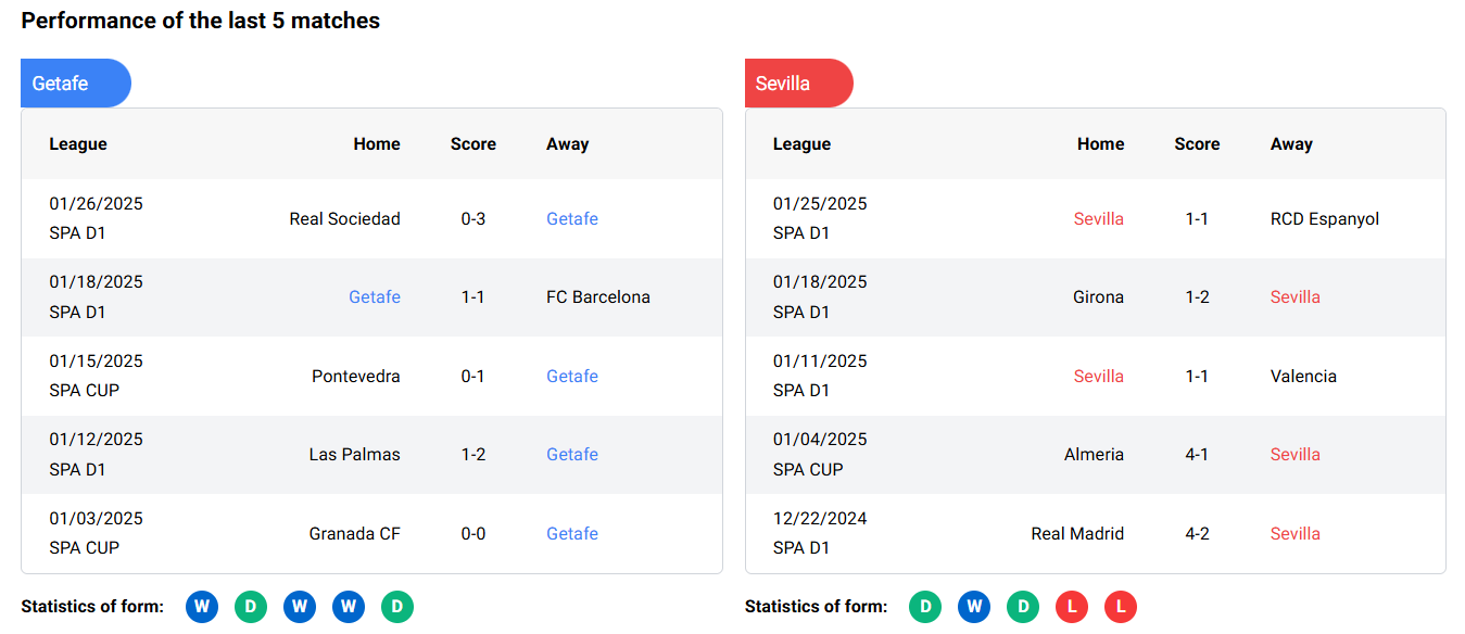 In their last five meetings, Sevilla has had the upper hand, winning three times and drawing twice. However, Getafe has managed to secure two victories in their last four encounters, including a 3-0 win in their most recent match.