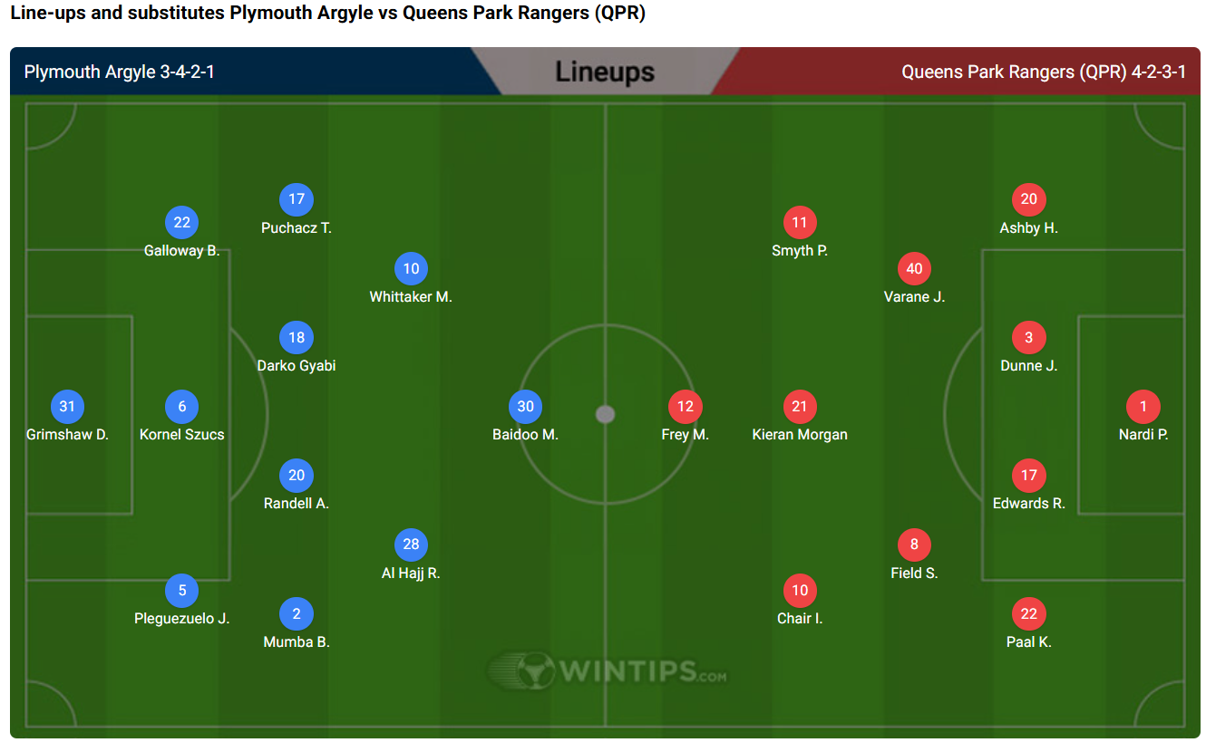 Predicted Plymouth Argyle vs Queens Park Rangers (QPR) Lineups