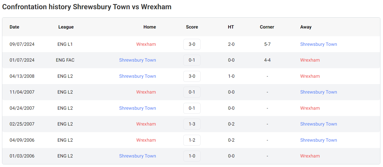 Shrewsbury Town vs Wrexham H2H Results